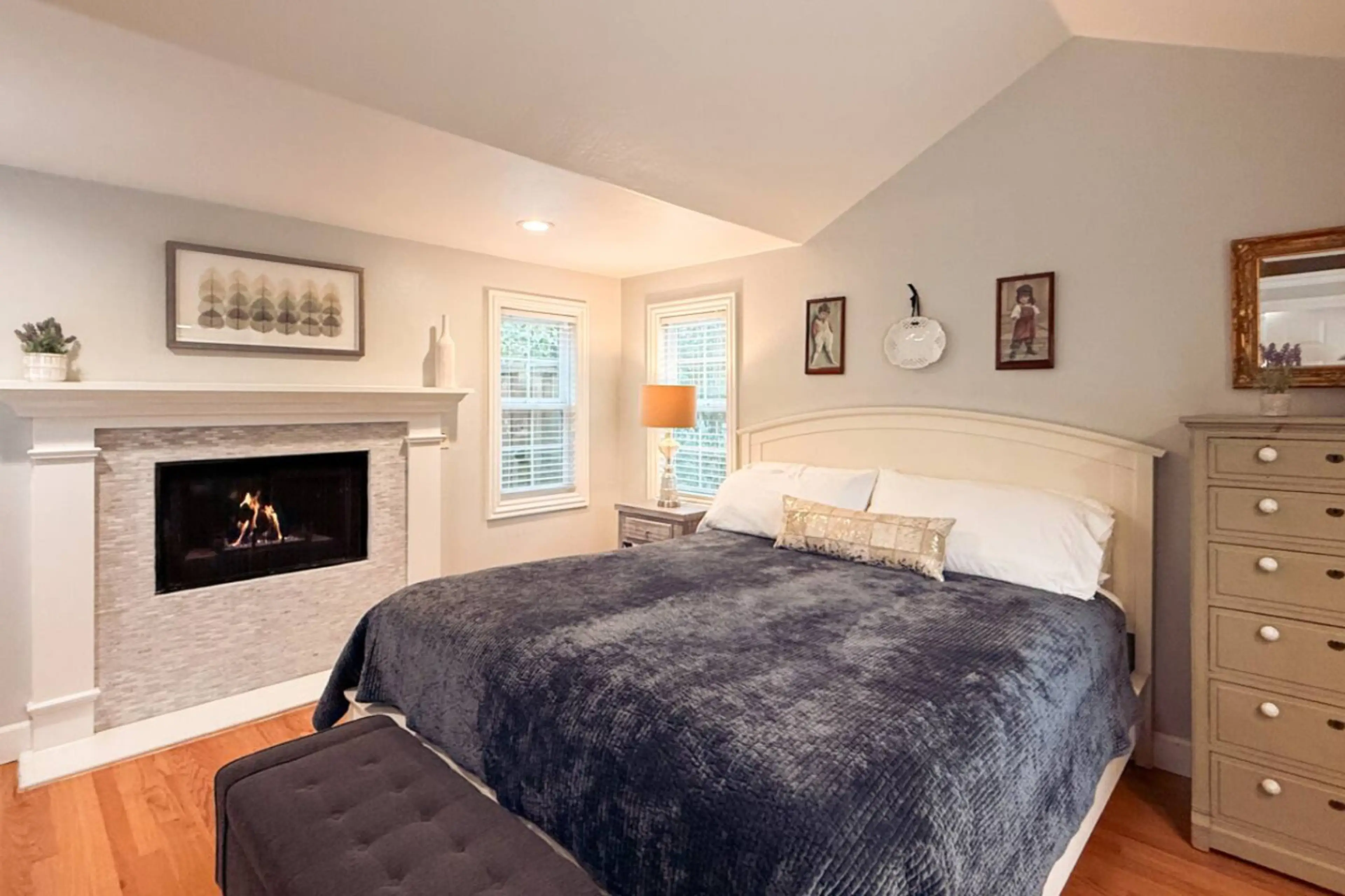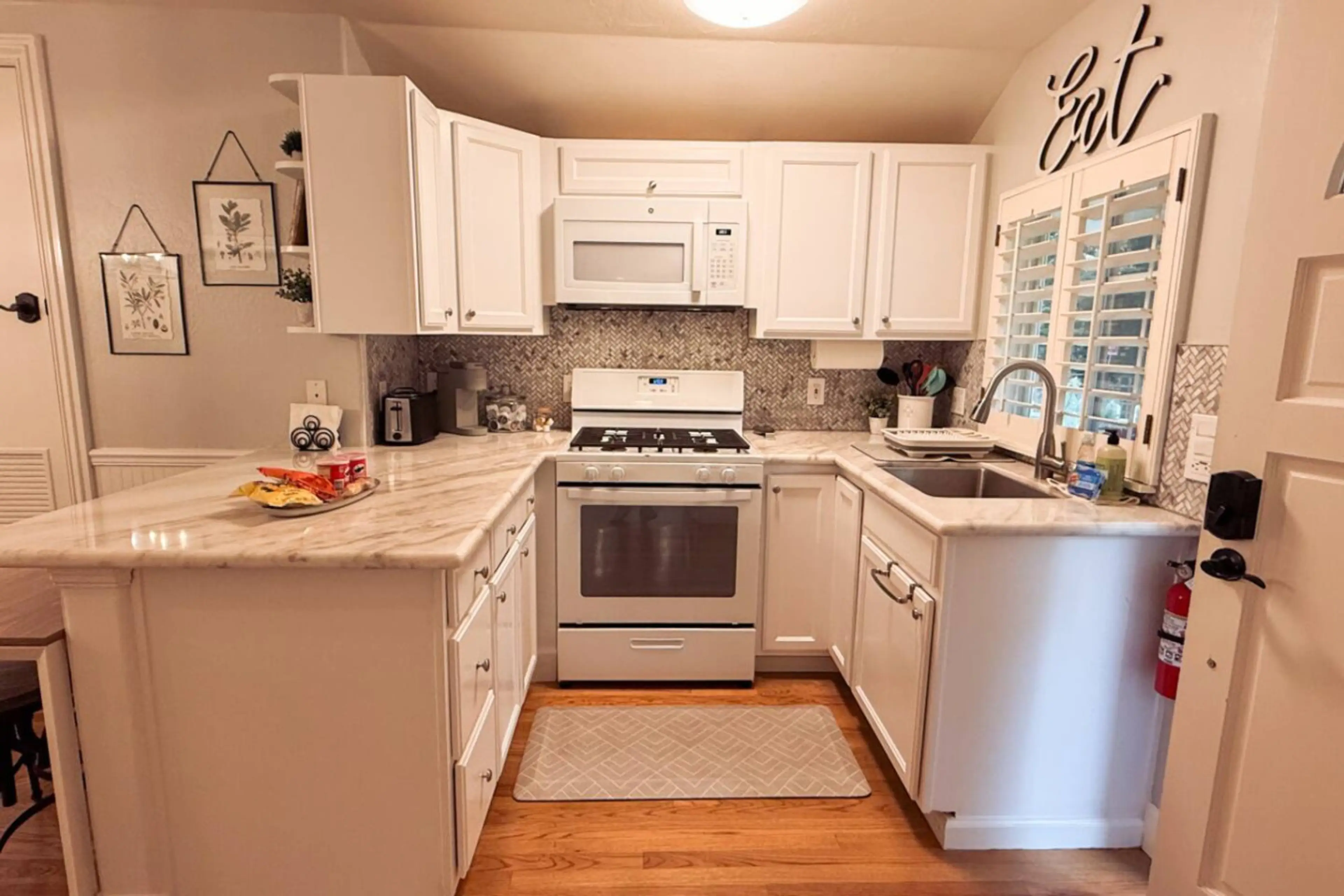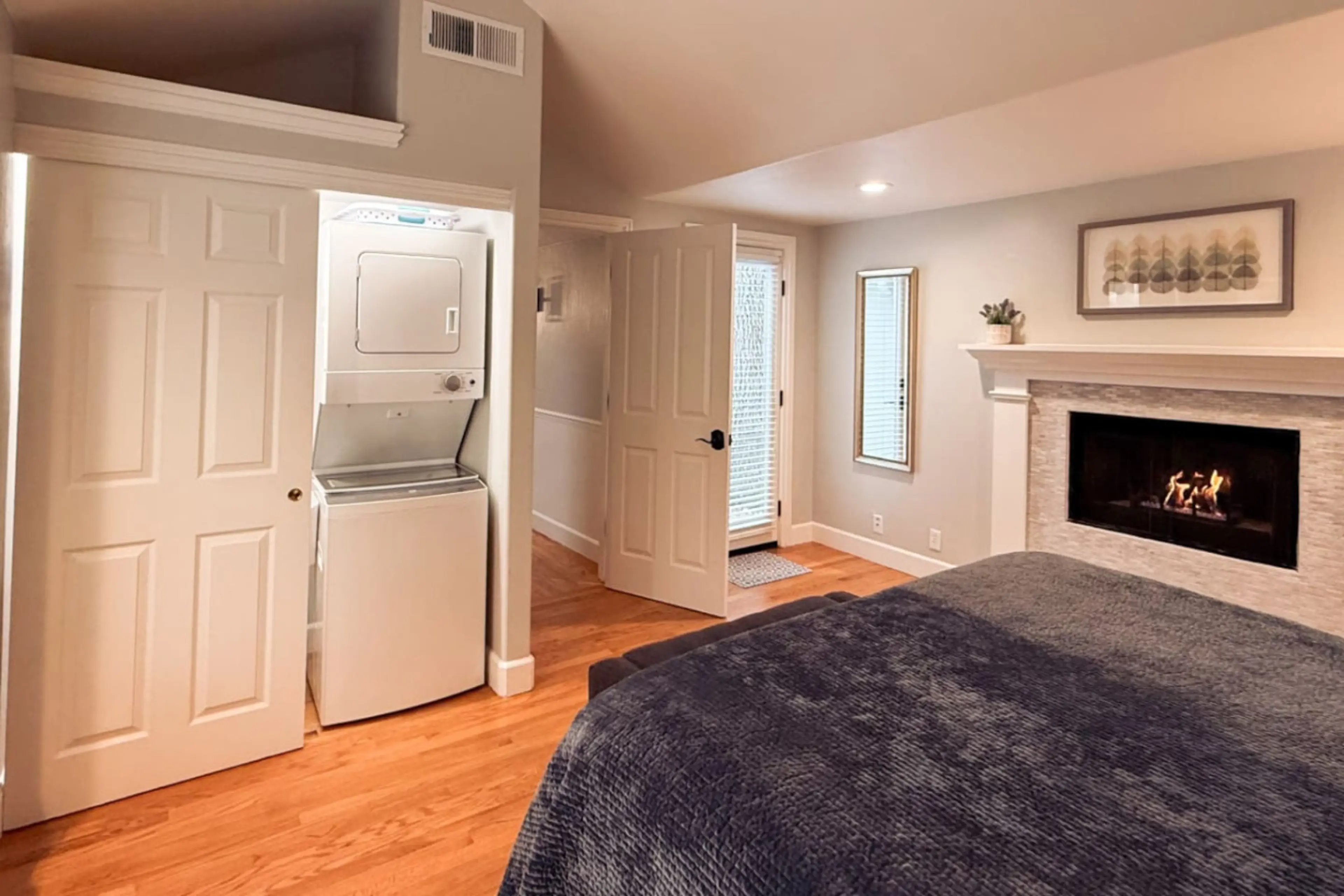 California King Bed Private backyard patio with a grill and fire pit table Smart TV Comfortable sofa that folds out into a bed A kitchen stocked with basic cooking necessities (pots, pants, utensils, oil, vinegar, salt, pepper, foil, syran wrap etc) Stacked washer and dryer Central heating/air condi...